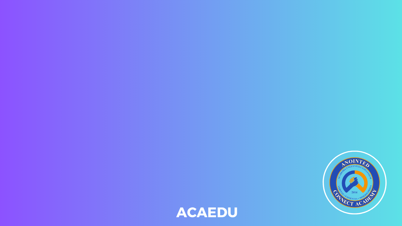 Anointed Connect Academy (ACAEDU) is a dynamic Christian learning initiative dedicated to equipping the next generation through faith-based education, test preparation, and professional development resources. As a ministry-driven platform, ACAEDU offers books, guides, and online training tools that support spiritual growth, leadership development, health education, and career advancement.